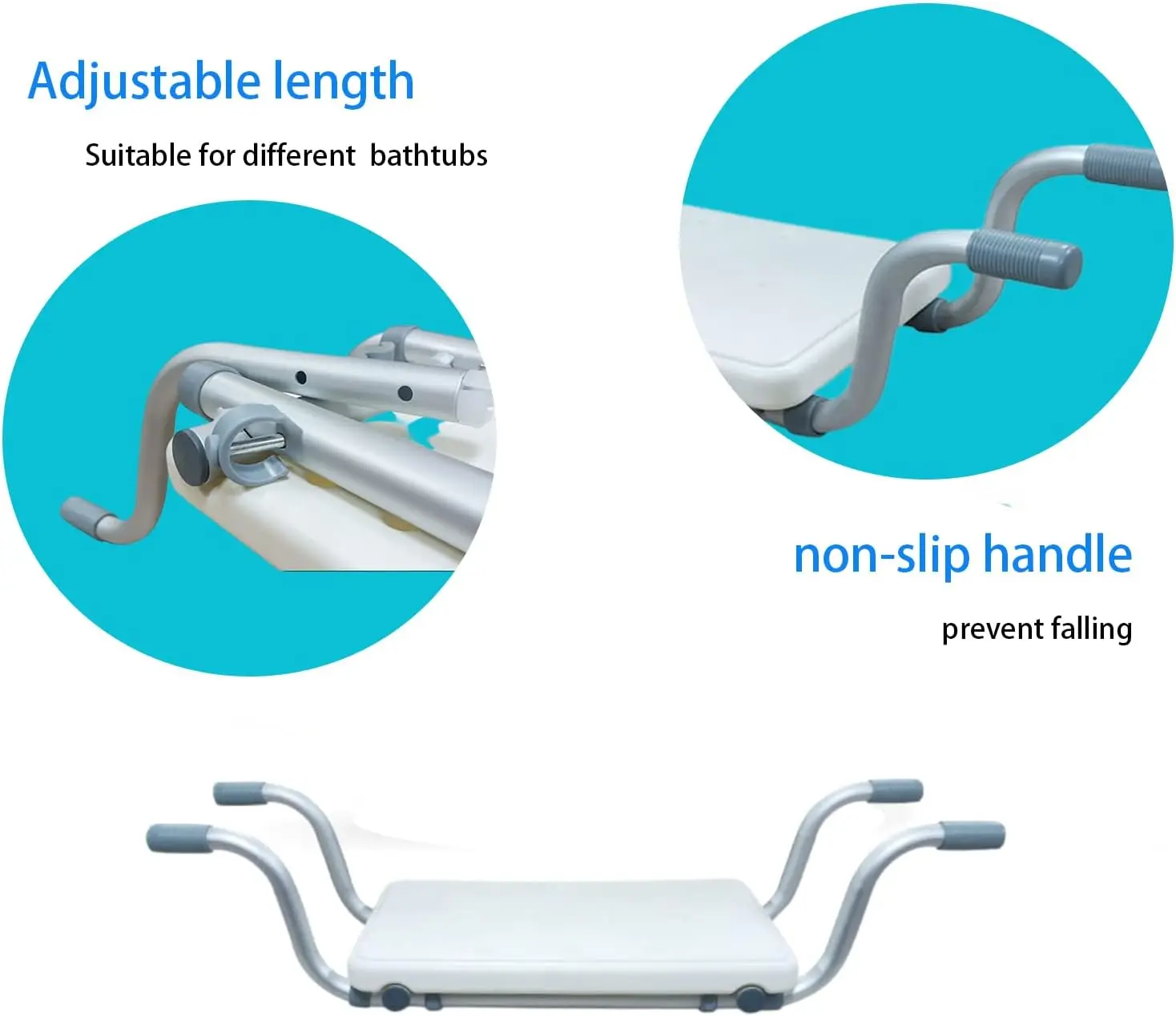 Das stabile Gestell aus Aluminium ist korrosionsbeständig und trägt bis zu 136 kg. Die rutschfesten Auflagen schützen die Badewanne und gewährleisten einen sicheren Halt.