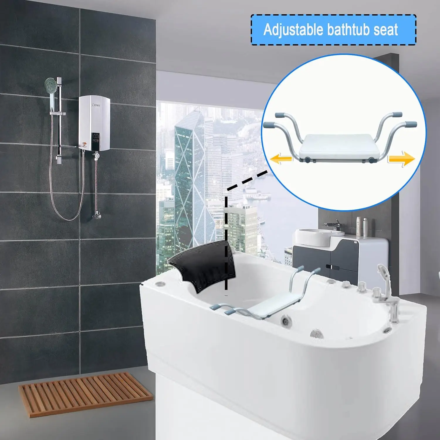 Dieser hängende Badewannensitz für Senioren bietet eine einfache und sichere Lösung für komfortables Baden. Er wird direkt auf den Rand der Badewanne gesetzt und erleichtert das Ein- und Aussteigen erheblich.