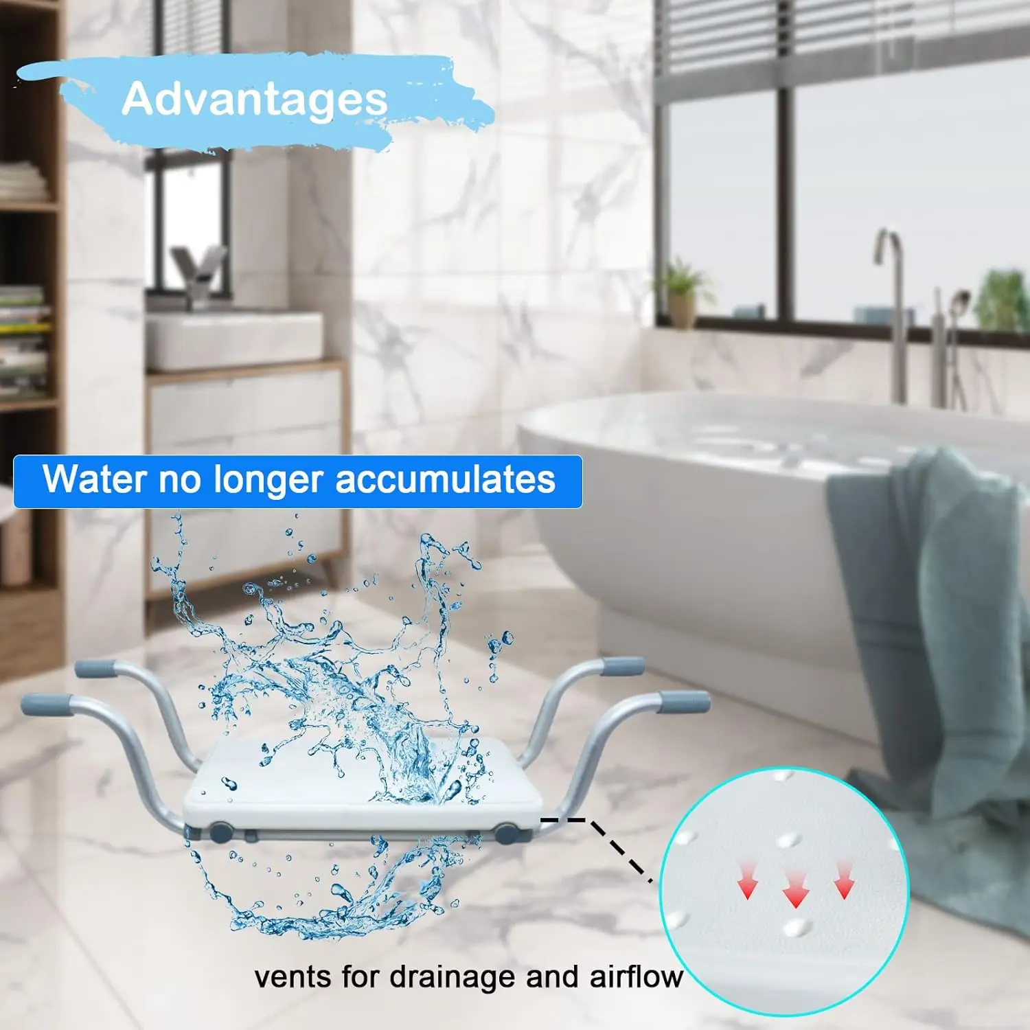 Hängender Badewannensitz für Senioren bis 136 kg. Stabil, leicht und ohne Montage für sicheres und komfortables Baden.