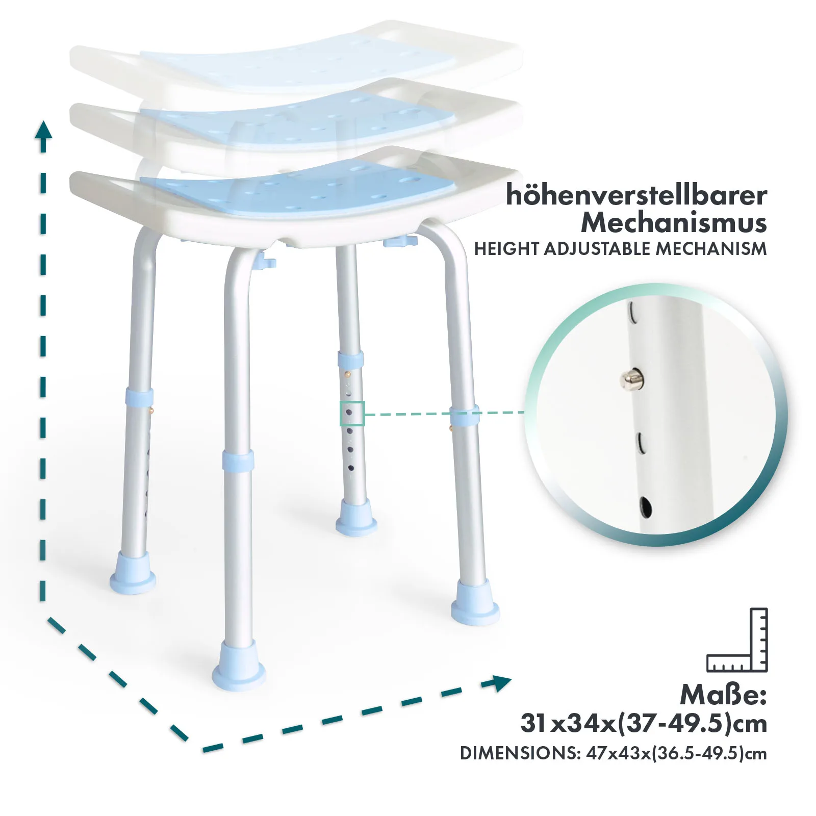 Die rutschfesten Gummifüße gewährleisten einen sicheren Stand auch auf nassen Oberflächen und erhöhen die Sicherheit im Badezimmer. Die ergonomische Sitzfläche sorgt für angenehmen Komfort während der Anwendung.