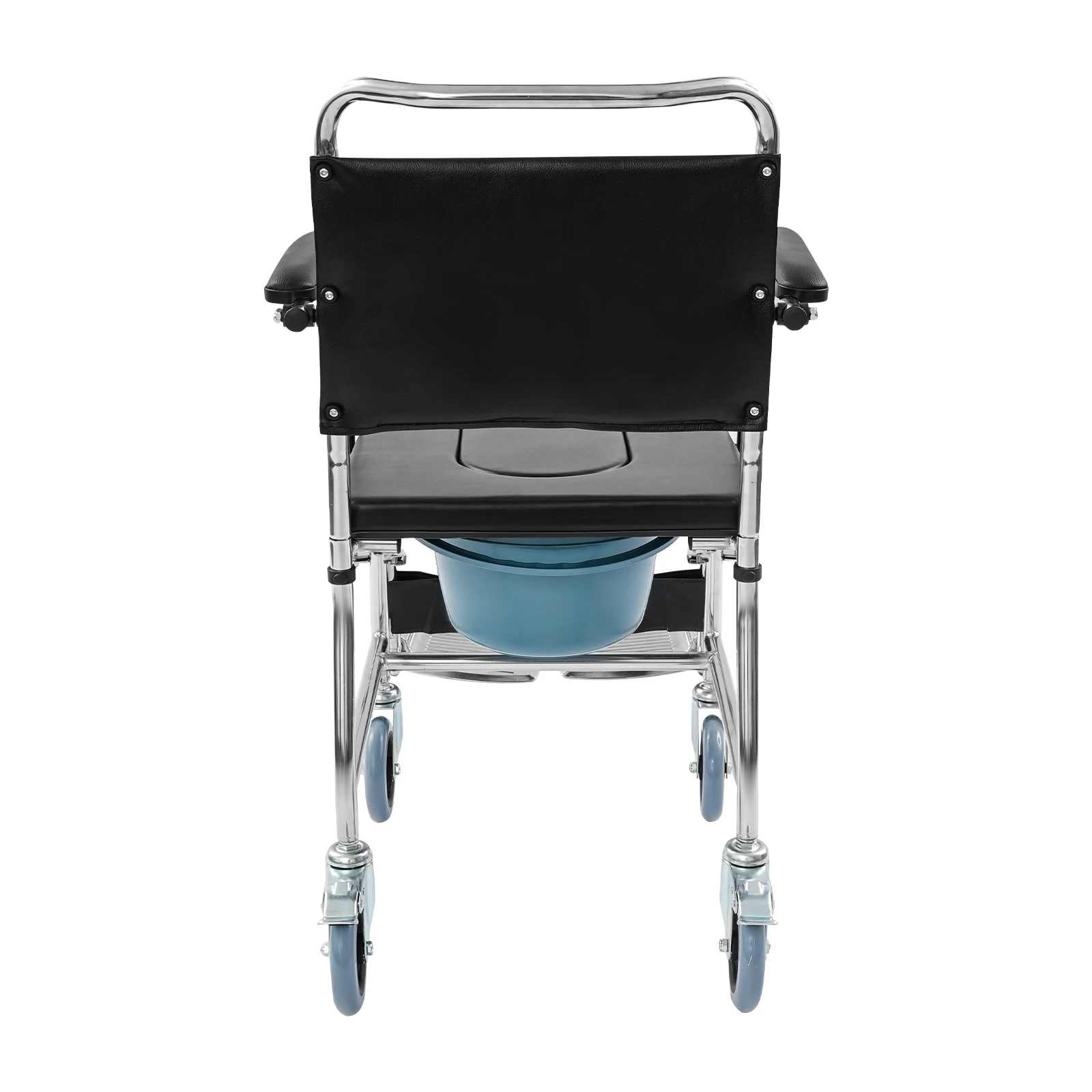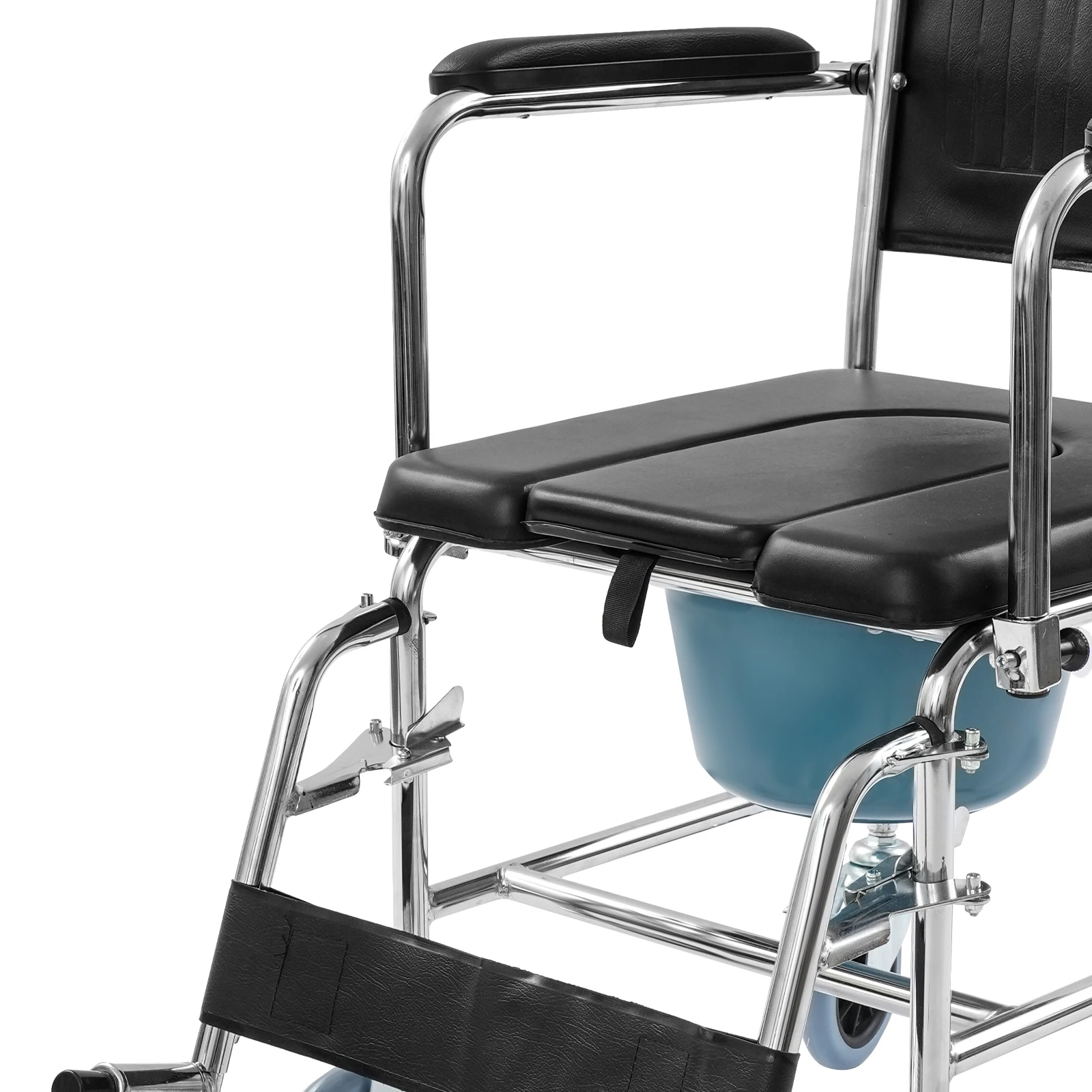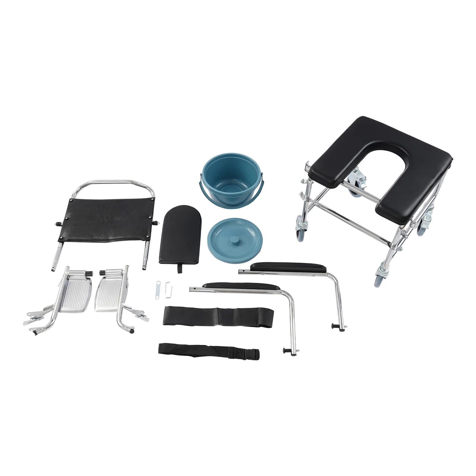 Der Rollstuhl verfügt über einen abnehmbaren Toiletteneimer mit Deckel, der eine saubere und komfortable Nutzung ermöglicht. Durch das durchdachte Design eignet sich der Stuhl ideal für eine flexible Nutzung im Alltag.