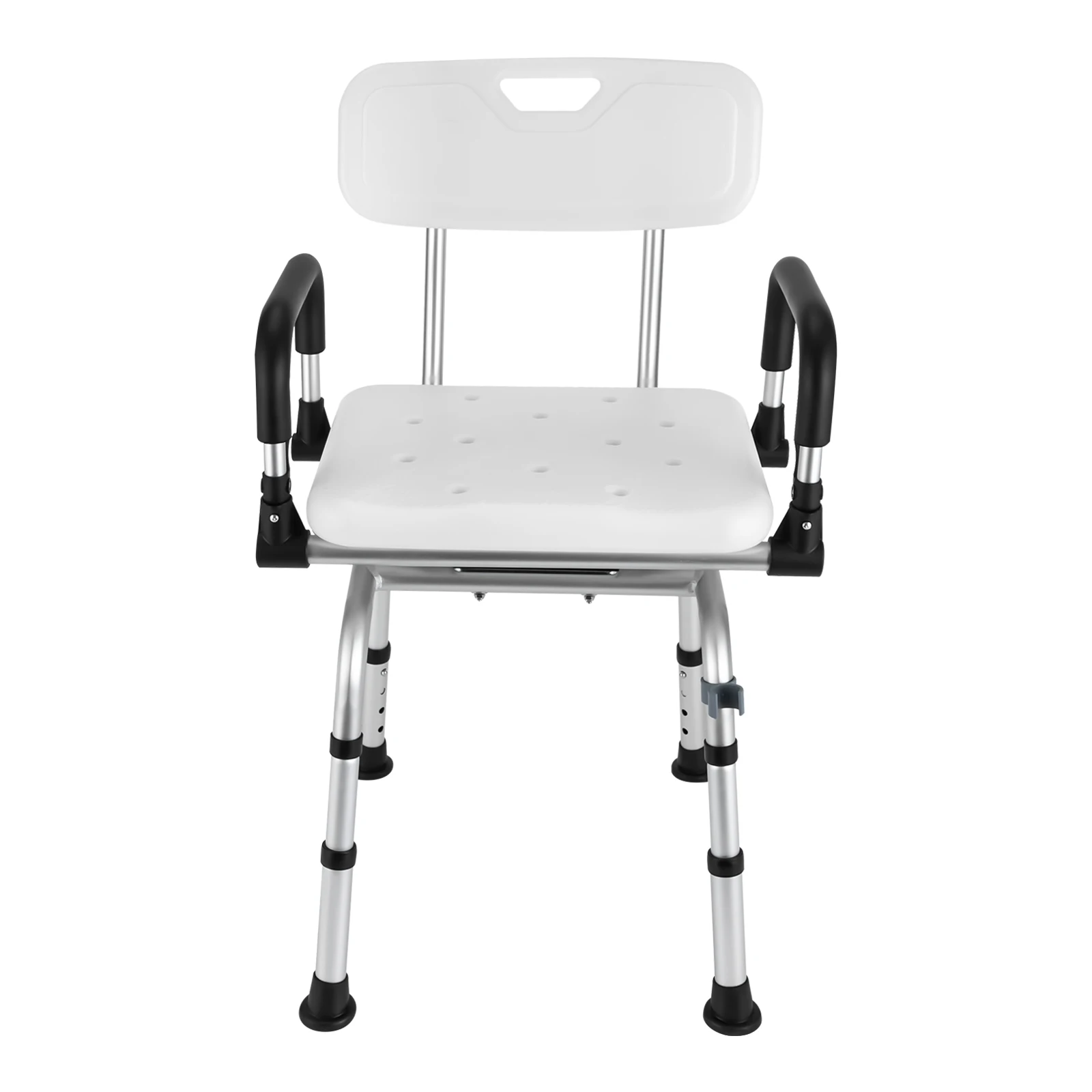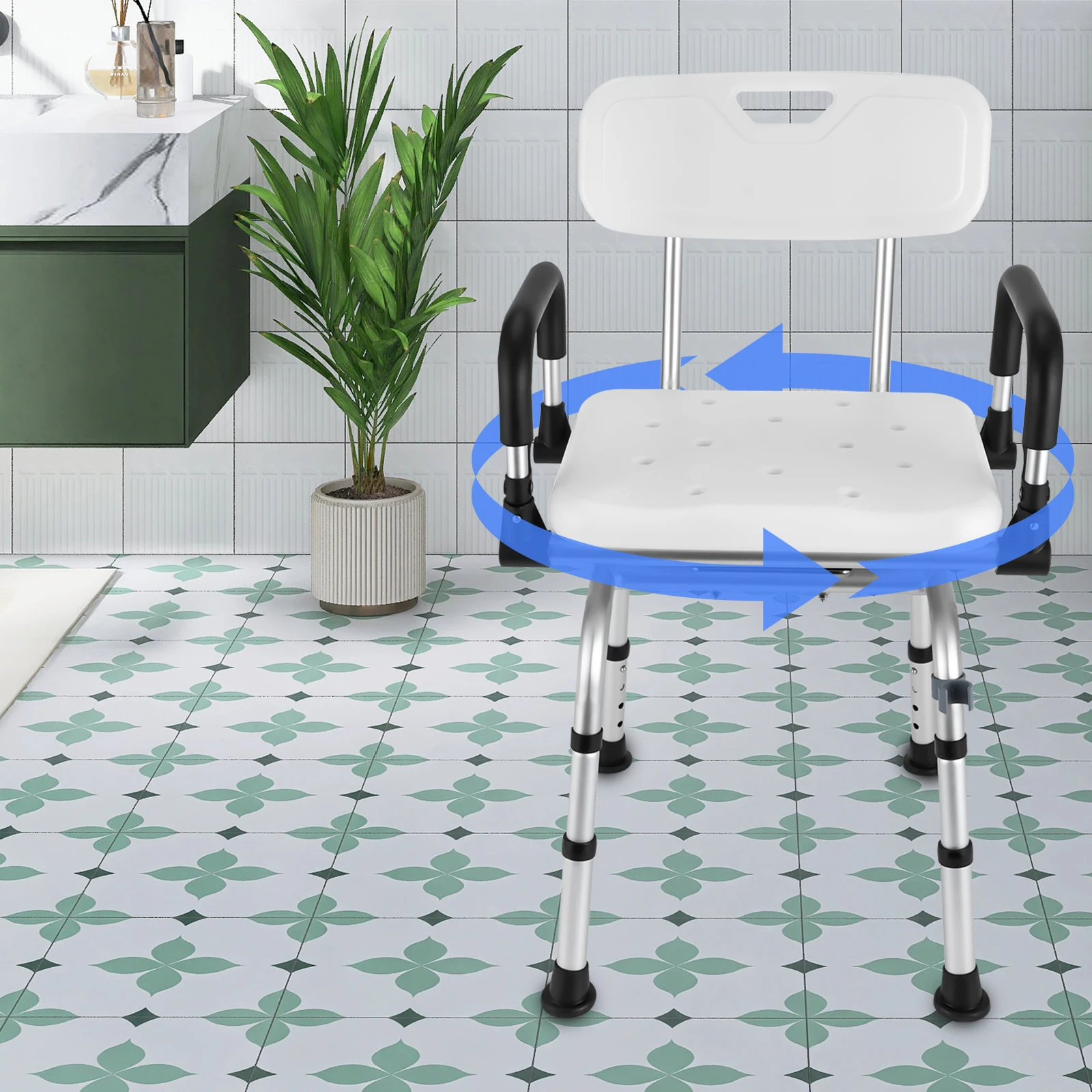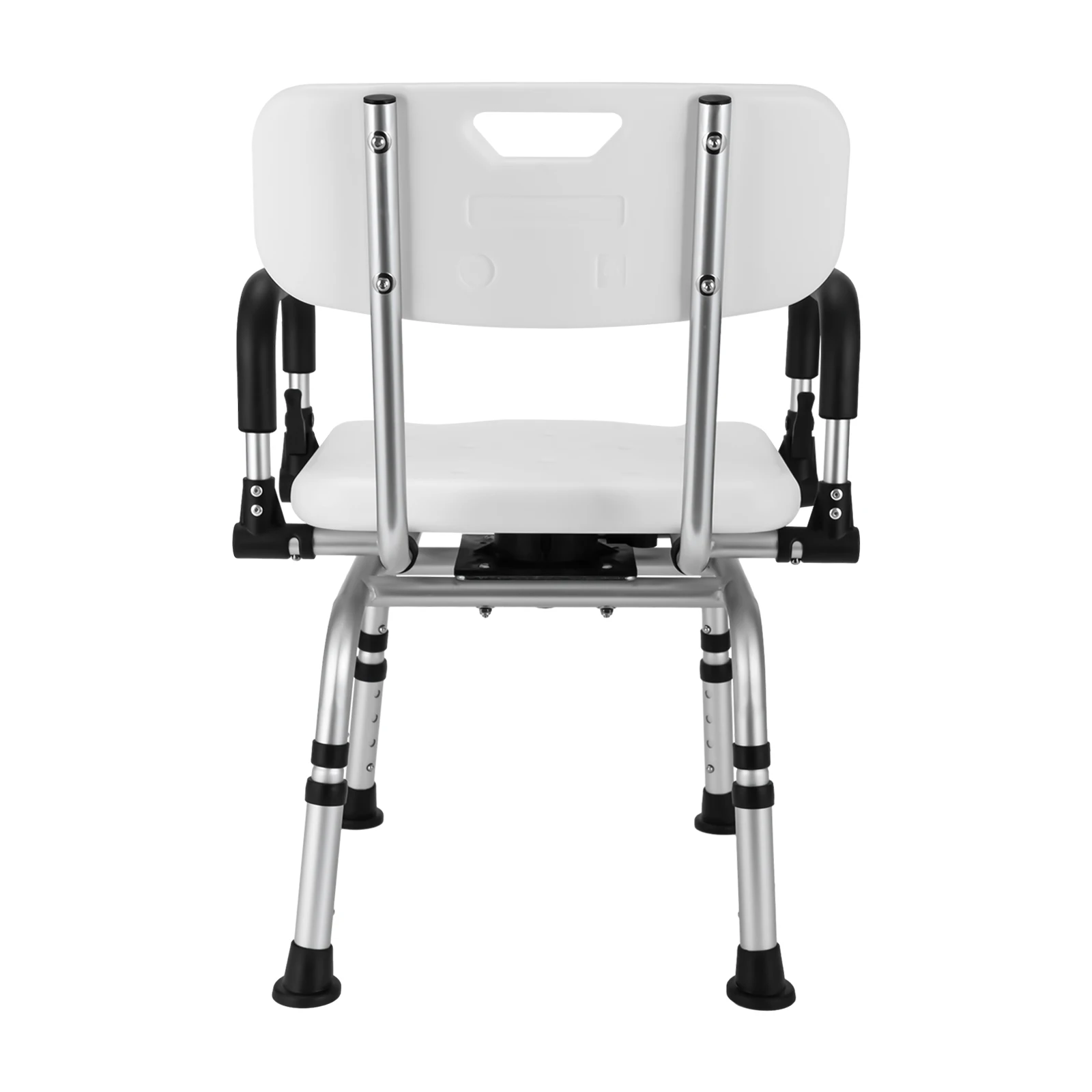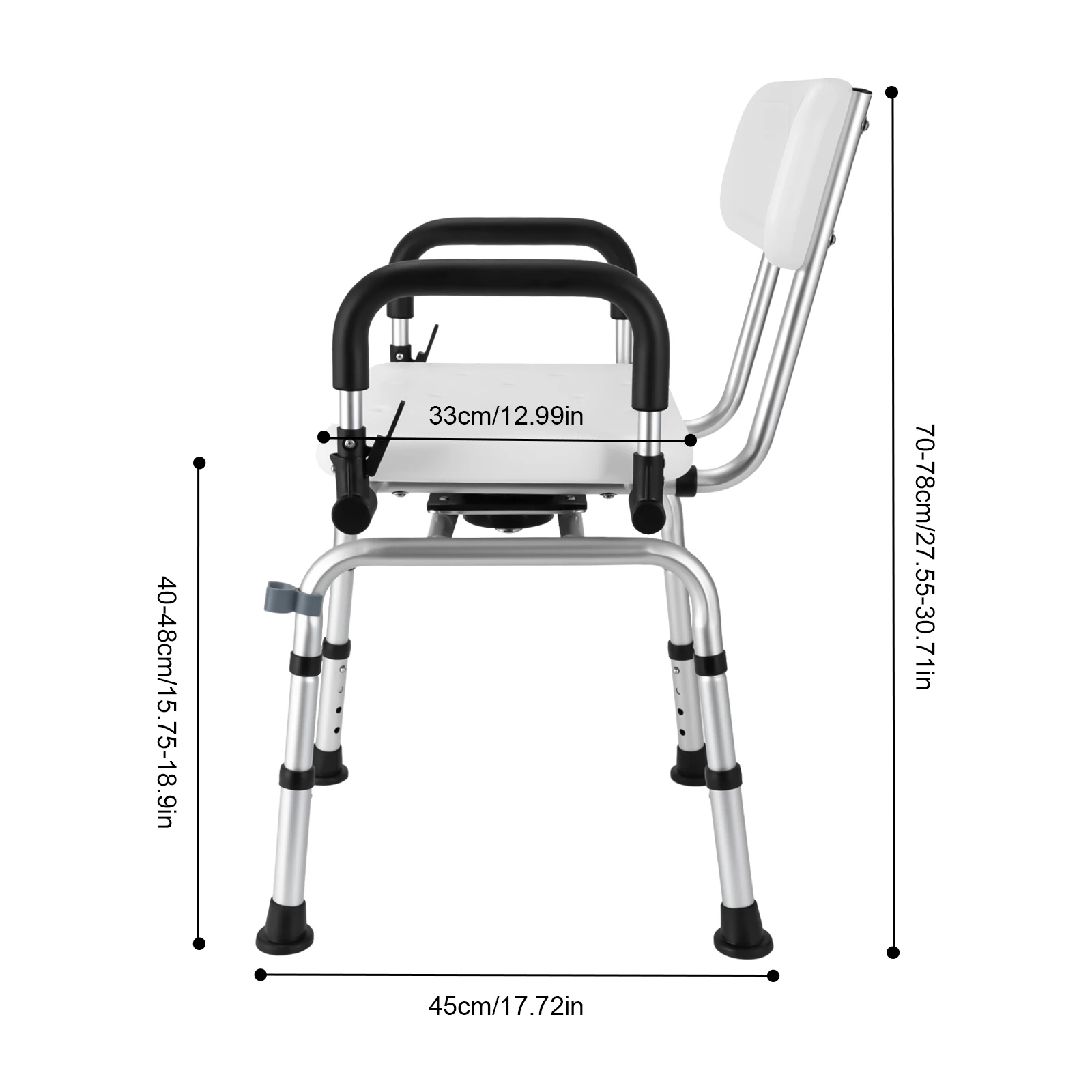 Drehbarer Duschstuhl mit Armlehnen. Stabil, komfortabel und flexibel im Alltag nutzbar.