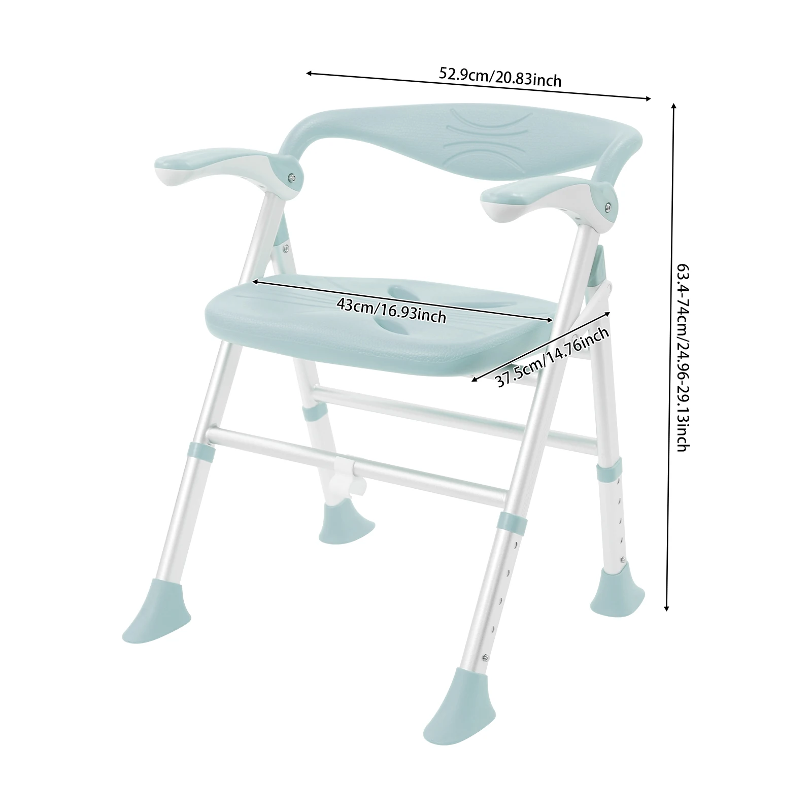 Klappbarer Badestuhl mit verstellbaren Armlehnen. Stabil, sicher und komfortabel im Alltag.