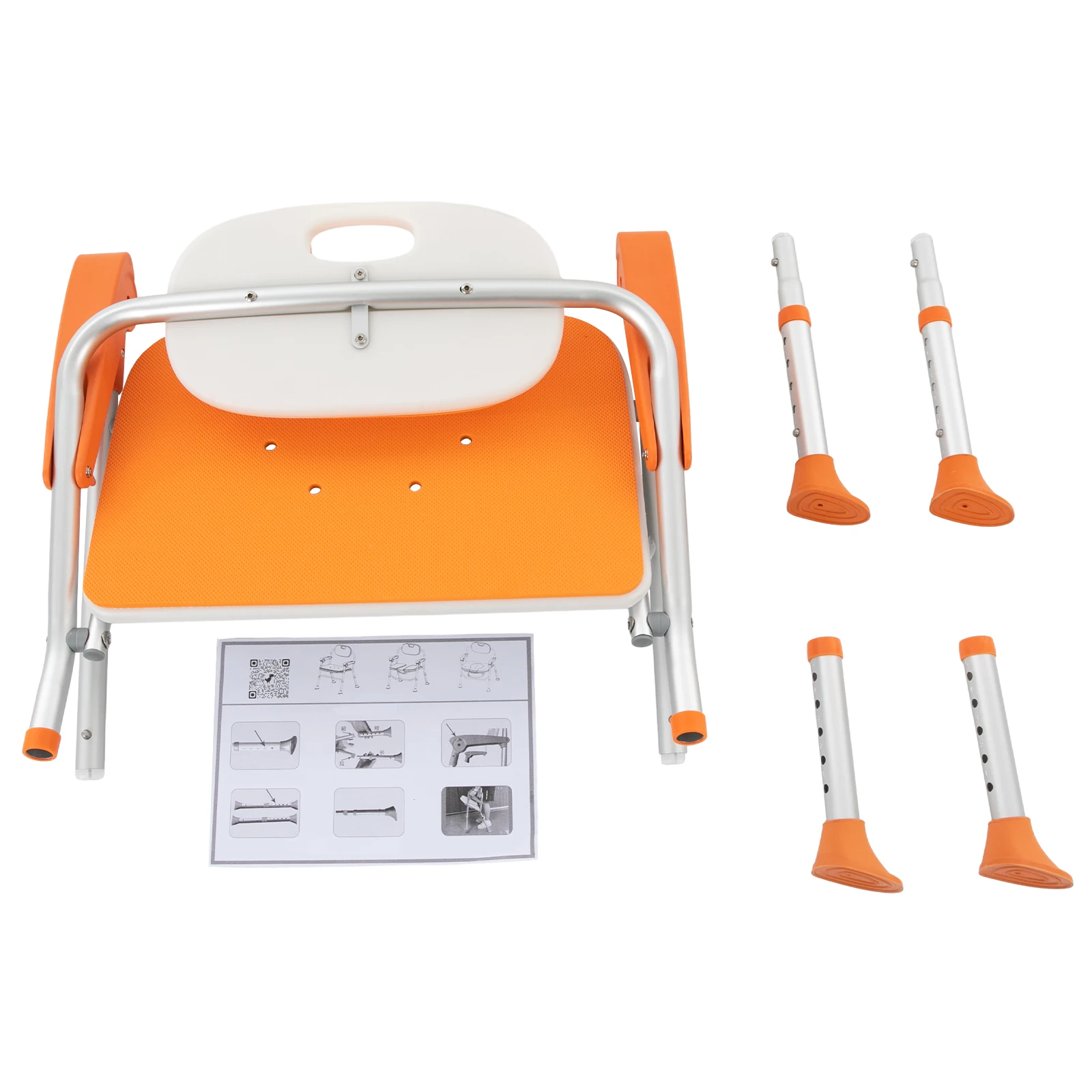 Die Armlehnen und rutschfesten Füße erleichtern das Hinsetzen und Aufstehen und sorgen für sicheren Stand auf nassen Oberflächen. Dank des klappbaren Designs kann der Sitz platzsparend verstaut werden.