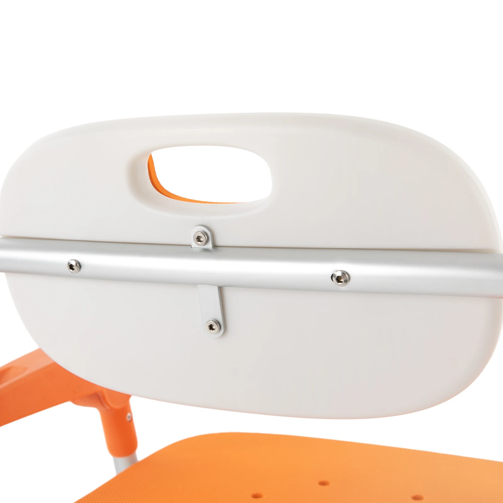 Klappbarer Duschsitz mit Rückenlehne. Stabil, sicher und platzsparend im Alltag nutzbar.