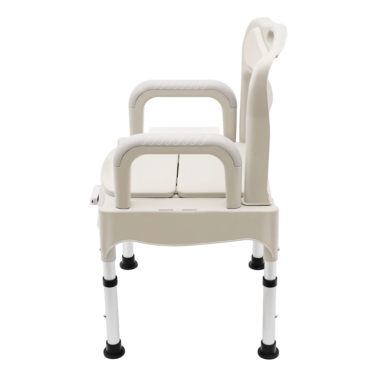 Das weiche Sitzkissen sowie die gepolsterte Rückenlehne sorgen für hohen Komfort, auch bei längerer Nutzung. Die Armlehnen bieten zusätzliche Unterstützung und erleichtern das Hinsetzen und Aufstehen, wodurch eine einfache und sichere Handhabung gewährleistet wird.